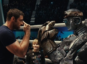 Structurally, the film is much like Rocky, the way an underdog is trained, the way the fights build, and the way an unlikely contender gets a climactic championship fight. Jackman is charming as down-and-out Charlie Kenton, and he has decent chemistry with both young Goyo and a romantic interest (Evangeline Lilly, Lost) that has about as much to do in the film as Adrian did in Rocky. This film is all about cast-offs and losers redeeming themselves, and a father and son discovering each other—with action that will remind Baby Boomers of the old Rock’em Sock’em Robots.