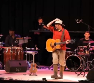 Day takes the stage wearing the same sunhat and mud boots he wore as he explored Sapelo Island at the University of Georgia Marine Institute. Day had been commissioned to follow scientists around and come up with a musical album that would teach children about the ecosystem in and around the saltwater marshes and beaches of the barrier islands—and he nailed it.