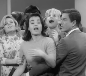 This season Laura gets her toe caught in a bath spout in the unforgettable episode “Never Bathe on a Saturday,” a sleep-deprived Rob tries to stay awake during his job interview with Alan Brady (Reiner) in the flashback episode “100 Terrible Hours,” and Don Rickles is a klutzy thief who tries to rob the Petries in a stalled elevator in “4 ½,” then later enlists them to entertain the inmates in “The Alan Brady Show Goes to Jail.” This is also the season that the Petries’ son, Ritchie (Larry Mathews), gets too attached to baby ducklings in “Never Name a Duck,” and Rob teases Laura by scaring her as they watch a sci-fi program together, only to have his joke backfire in “It May Look Like a Walnut.”