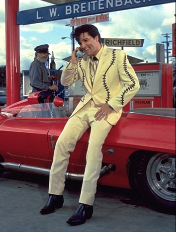 But the film has a lot more going for it than the music. The premise is fun, for one thing. It’s a riff on Mark Twain’s The Prince and the Pauper, where Scott Heyward (Elvis), the son of Texas oilman stops at one of his daddy’s gas stations and runs into Tom Wilson (Will Hutchins, TV’s Sugarfoot). Wilson is a poor guy with a motorcycle on his way to Miami to work as a ski instructor at a resort hotel that’s swarming with rich people. Scott is running away from a father (James Gregory, in an over-the-top role) who wants to make him a vice president, preferring to make it on his own. And when he complains that he wasn’t even sure if the last woman he dated liked him for HIM or for his money, that’s when the idea hits them both to trade identities . . . and vehicles . . . and wardrobes . . . and wallets.