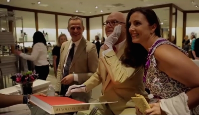 impressionistic structure of the documentary still carries through. By the end of the film you feel as if you have some sense of who Blahnik is, why he’s important, and just how famous he really is. Quirks such as his germaphobia-driven white gloves seem to take on an air of normalcy as we listen to him and watch him go through interviews and book-signings and other events. Yet, you still have questions about his life.