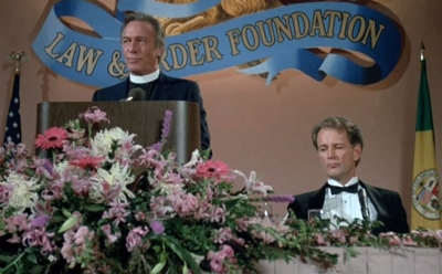 Christopher Plummer plays a holier-than-thou reverend leading a morality crusade. At the same time, this pillar of the community has ties with a cult known as P.A.G.A.N. (People Against Goodness and Normalcy), and one of the fun scenes occurs when Friday and his new streetwise, laid-back partner Pep Streebek infiltrate a big P.A.G.A.N. gathering and save “the virgin Connie Swail” (Alexandra Paul) from being sacrificed. All of the actors hit their marks, the most savory performance is Dabney Coleman’s funny take on porn publishers like Larry Flynt and Bob Guccione.