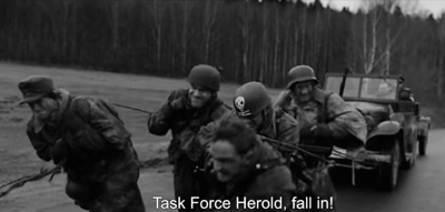 Shot in black and white in German with English subtitles, The Captain is a fascinating film, and not just because it’s so totally different from all the other WWII films that depict the battles, struggles, and individual stories of bravery and survival. It’s also a provocative psychological study. We wonder: