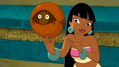 provided by an armadillo who gets involved). It’s hard to tell whether the people of El Dorado are Aztec, Mayan, or a mixture, but ultimately that doesn’t matter. And while the cover suggests the kind of minimalist animation we get from Saturday morning cartoons, that’s not the case at all. The DreamWorks crew creates a richly textured world that’s full of detail. The water may not be as sophisticated as Disney’s, and the gold can seem differently rendered from other elements, but it’s still quite accomplished.