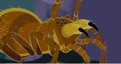 house. There’s a little more in the way of heroes vs. villains plotting in this episode, and a greater variety of animals that are legitimately Halloween-worthy as we watch the Kratts try to rescue the captured animals and return them to the wild. The animated segment highlights the vampire bat and Goliath birdeater (or tarantula), while there are at least a dozen more species that pop up in the animated story, chief among them the Komodo dragon. Chris pops in vampire bat and Komodo dragon discs to assume their animal “powers,” while brother Martin powers up with a Goliath birdeater. Among the live-action animals are a turkey vulture, goblin shark, and ghost crab.