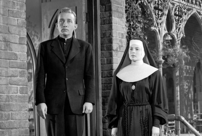Originally, audiences preferred Father O’Malley squaring off against a stubborn Father Fitzgibbon (Barry Fitzgerald) in Going My Way, a story about a young priest in a tough neighborhood who helps his financially failing church revive itself. But time has favored the sequel, The Bells of St Mary’s, which now has a 7.3 rating at IMDB.com compared to 7.1 for Going My Way. Leo McCarey directed both films and Crosby, of course, sings in both of them—in this film it’s the title song, “In the Land of Beginning Again,” and “Aren’t You Glad You’re You.” But in truth, the biggest scene stealer isn’t Crosby or Bergman—it’s beloved character actress Una O’Connor, who dusts off her Irish brogue to play the woman who shows Father O’Malley to his room when he arrives and warns him about what he’s getting into with this new situation, surrounded by a bunch of nuns. Seeing her tongue-in-cheek wit at work, viewers might recall O’Connor as Olivia de Haviland’s attendant in The Adventures of Robin Hood or as Barbara Stanwyck’s housekeeper in Christmas in Connecticut.