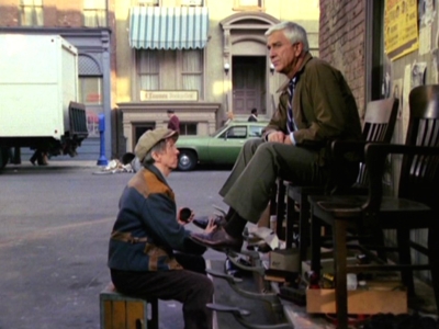 The star of Police Squad! is Leslie Nielsen, who played the doctor in Airplane! (“And don’t call me Shirley”) and takes the same approach with Frank Drebin, who seems clueless as Clouseau and has a deadpan delivery to match. While Alan North does a fine job as Drebin’s boss, George Kennedy would replace him in the movie and hold his own a little better opposite the charismatic Nielsen. In this series, two minor characters also stand out, and viewers will find themselves looking forward to their routines. The first is William Duell, as Johnny the shoeshine man. Duell is the clichéd informant who knows everything, and that includes syndromes Dr. Joyce Brothers wants to know about, or specialized information that other celebrity guests solicit. Equally fun is Ed Williams as Mr. Olsen, a police lab scientist who’s always giving Science Guy lessons to an adolescent girl when Drebin walks in, and those bits are far funnier than the exchanges with Drebin. Fun too are the celebrity guest stars who are bumped off in the opening credits.