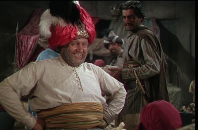 Though it’s the kind of solid-but-generic sword-and-sandal film that Hollywood loved to make during the Golden Age, Ali Baba and the Forty Thieves also has a campy feel to it because of the presence of veteran character actor Andy Devine, who made a career out of being the Western hero’s sidekick and delivering comic relief. It’s hard to see his rotund frame in Arab garb and hear his familiar raspy high-pitched voice without thinking of him in buckskin as Jingles in TV’s Adventures of Wild Bill Hickok, or Cookie from the Roy Rogers feature films. Others will recognize him as the driver in John Ford’s Stagecoach, but regardless, seeing him in a different costume adventure or seeing him for the first time is enough to make you smile.