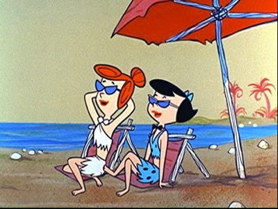 The Honeymooners starred Jackie Gleason and Audrey Meadows as the Cramdens, a New York City couple who palled around with their neighbors, the Nortons (Art Carney and Joyce Randolph). Here we get Fred and Wilma Flintstone, whose neighbors and best friends are Barney and Betty Rubble. As with The Honeymooners, many an episode revolves around a mild battle of the sexes and mishaps that Ralph Cramden and Fred Flintstone get themselves into. Like Ralph, Fred is a bully and a loudmouth, but he’s easily put in his place. In the #MeToo era it’s probably important to mention that the beefy and blustery Ralph, a bus driver by trade, was forever shouting and often threatened to sock his wife. He never did, of course, because Alice knew, as Wilma Flintstone did, that her husband was all bark and no bite. If there’s any hitting that happens, it’s more often the wife or someone else that administers the blow, all for comic effect, of course. The Flintstones softened the gender sparring of The Honeymooners for family audiences, but the sitcom formula was still apparent in every half-hour episode.