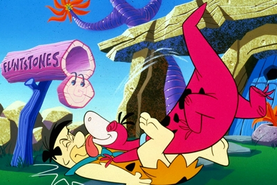 Crab lawn mowers, a dinner of roast pterodactyl leg, triceratops wheelbarrows, birds using their wings to cover red and green stoplights to coordinate traffic—it’s all part of an average day in Bedrock, the pre-historic community where one of TV’s most famous animated families lived from 1960-66. Fred Flintstone was a blue-collar working stiff, the operator of a dinosaur-powered crane at the Rock Head & Quarry Cave Construction Co. Like everyone else, when the end-of-day whistle blew, he hurried home in a foot-powered car so he could be with his wife, their pet “dog” that was really a small dinosaur, and later, a baby girl named Pebbles who would inspire a fruity breakfast cereal.
