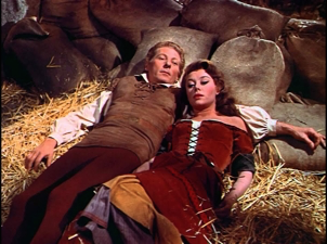 Despite his own timidity, Hawkins yearns for a more active and manly job. He finally gets his chance when he’s ordered to team with the swashbuckling Maid Jean (Glynis Johns) and take the child to safety after the group’s forest lair had