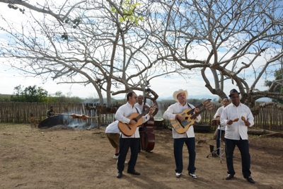 Although the film is in Spanish with English subtitles, I highly recommend it for family viewing because of the music and cinematography. The plot, dialogue, and acting are considerably less accomplished. Loosely based on a true story, Mambo Man follows dream-big entrepreneur JC (Héctor Noas), who works hard enough to buy two farms, but then has various disasters cancel out any success he envisioned. He likes to think of himself as an important man, and has “associates” to help him. A musician himself with all sorts of contacts, he promotes concerts and tries to find rich European investors to back his musical enterprises, wooing them with performances and a feast that includes a whole roasted pig. But like any get-rich-quick schemer, he is ripe for a fall, or at least a stumble. When he finds himself going up against another get-rich-quick schemer, his latest gambit is threatened. It sounds dramatic enough, but the plot and acting and dialogue really can’t compete with the music and the visuals.