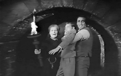 Rooney isn’t bad as bumbling reporter David Prescott (hey, at least they didn’t introduce him as Peter), but his character doesn’t have the same layered complexity as O’Connor’s, and his range isn’t as varied. This last installment tries to put Francis and his pal in the same sort of haunted house situations that made films like The Ghost Breakers and The Cat and the Canary popular. The only thing is, director Charles Lamont doesn’t spotlight the potential jump scares and exploit the setting to the same degree. Francis happens to see a couple of guys roll a boulder onto a car below, then gets David to tell the police. After that, they get involved with a Scooby-Doo! style ghost and a gang of crooks who are looting the mansion. Kids may like this one more than the adults—and maybe, with military satire no longer in play, that was the intended audience.