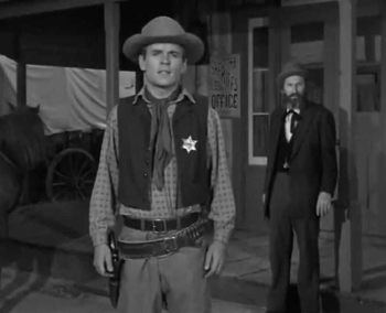O’Brian: The wardrobe was a major fight, because they wanted me to wear a light-colored hat. They showed me what the hell they had laid out—they wanted me to wear the Gene Autry, Roy Rogers type clothes, the singing cowboy look—and I said, “Oh shit, forget that,” and I went and picked out what I felt Wyatt Earp wore. I looked at all the pictures and stuff and I picked out the black, flat-brimmed hat because I saw a picture that he had a similar hat and I picked it. And it was a frock coat and vest because that’s what the guy that owned the drug store wore, or the guy that owned the hardware store, or the mayor, because that was the wardrobe for a businessman. There weren’t any uniforms in those days. I mean, the only thing that came close to it was the badge.