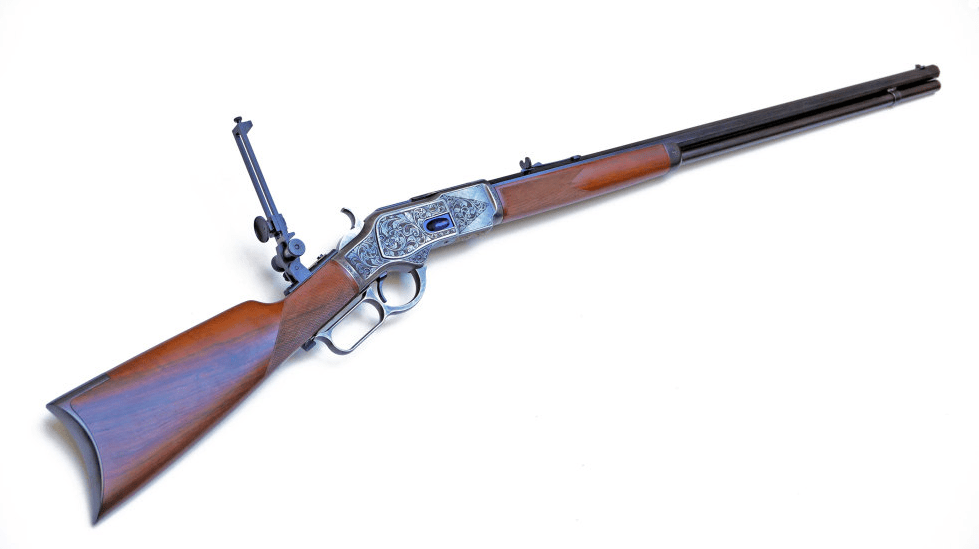 Winchester ’73 is set just after the battle that was popularly known as Custer’s Last Stand. Indians now have repeating rifles, thanks to gunrunners who have no qualms about selling weapons that will be used on settlers and U.S. Cavalry . . . as long as they can make a tidy profit. The Indians that wiped out Custer and his command had better rifles than the cavalry, and America was just learning about Little Bighorn shortly before the nation’s big Centennial celebration. It threw a damper on celebrations in the East, but not in Dodge City, where a genial Wyatt Earp confiscates the guns of newcomers Lin McAdam (Stewart) and Frankie “High-Spade” Wilson (Millard Mitchell, who would play the big studio boss in Singin’ in the Rain). Lin is tracking down Dutch Henry Brown, with whom he has a personal beef—one that will result in gunplay. As they reluctantly hand over their weapons, the audience is shown the inside of the lawmen’s office that’s completely packed with rifles and handguns and gun belts full of ammunition. Earp explains, it’s impossible to keep law and order in a wild town like Dodge if they allow people to keep their guns. “You’ll get them back when you leave town,” he says.