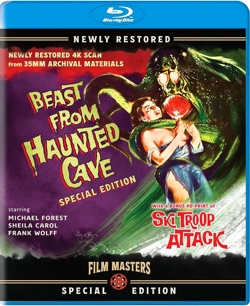 Just in time for Halloween, Film Masters has released a B-movie trick or treat (you decide): a newly restored 4K scan from 35mm archival materials of the Gene and Roger Corman-produced Beast from Haunted Cave Special Edition. What makes it a special edition is bonus B movie from the King of B Movies, director Roger Corman: his WWII drama Ski Troop Attack, with both films released in 1959.