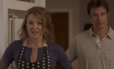 Funny how you don’t give casting a second thought until it seems wrong. And from the minute that Patrick Muldoon stood in front of a sparsely populated but really impressive church and delivered his sermon, I wasn’t believing him as a minister. He had the vibe of a business executive leading a team-building exercise, not someone who felt it his calling to tend to God’s flock. Dina Meyer also seemed far from what we think of when we think of preacher’s wives—a little too glam, a little too worldly, maybe. Their children were fine, though we all laughed that the family’s refrigerator is covered with alphabet magnets and the kids are in their teens. But details like that make a difference, and we had a hard time swallowing the “reality” that Fishes ‘n Loaves was serving. Stiff lines of dialogue didn’t help, nor did situational lines that seemed totally unbelievable. I mean, what teenage guy, upon meeting a teenage girl with his family standing right there next to him, would gush, “Gee, you’re pretty”?