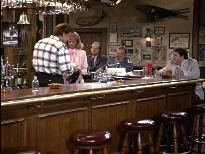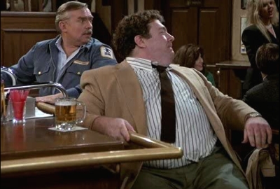 —“NORM!” (George Wendt), who elicits a moniker cheer every time he enters Cheers because he spends more time there than he does at home.